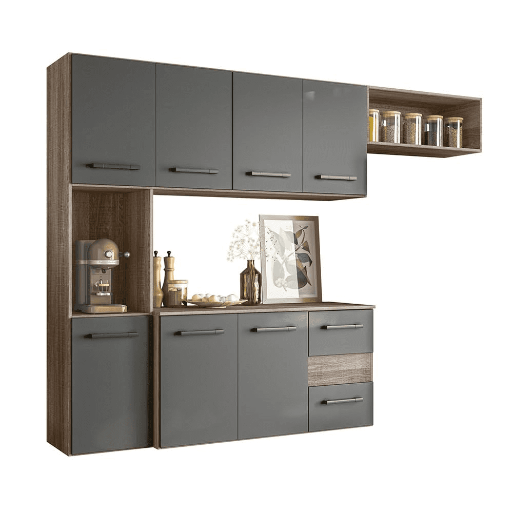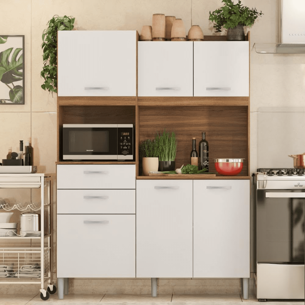 Com suas 6 portas e 2 gavetas, proporciona bastante espaço para armazenar utensílios e alimentos, que se ajustam perfeitamente nas prateleiras.