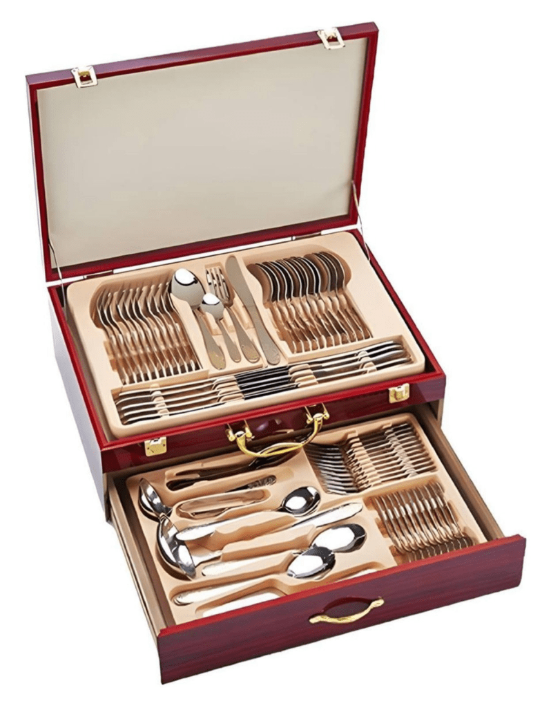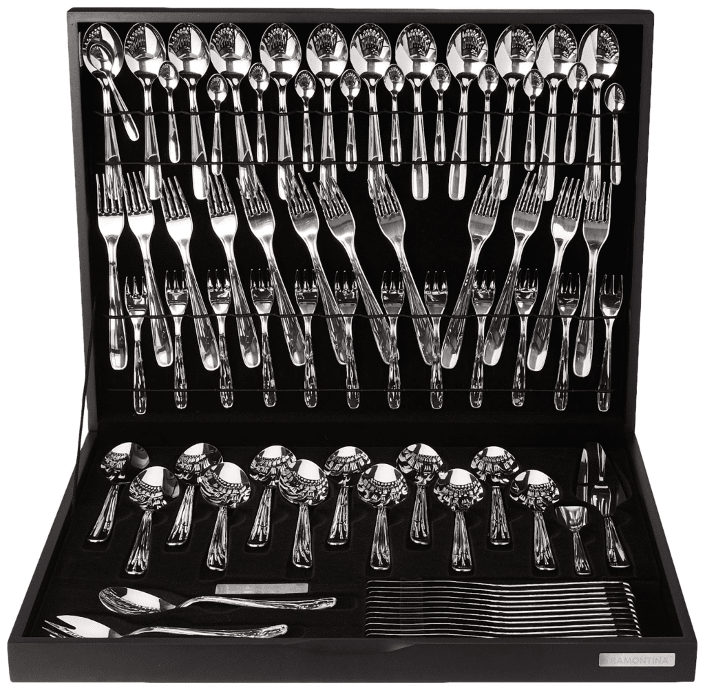 Para famílias grandes ou quem adora receber, o Faqueiro Design Alemão com 84 peças é um verdadeiro espetáculo.