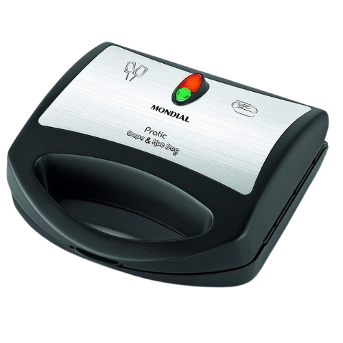 Além de crepes, esse modelo permite fazer hot dogs e até mini pizzas, sendo um equipamento versátil para quem deseja diversificar os preparos.