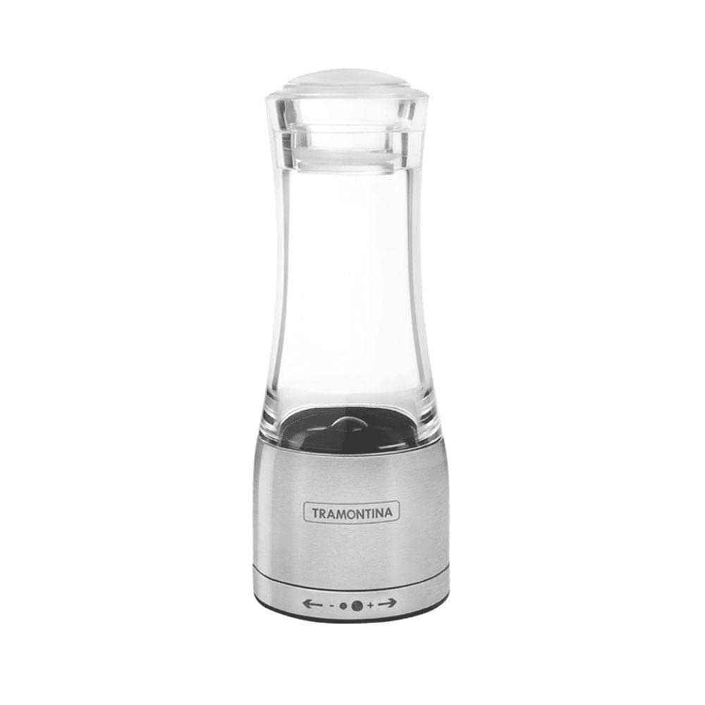 A Tramontina entrega um modelo eficiente para uso cotidiano. Com corpo em acrílico e inox, tem mecanismo em cerâmica e ajuste de granulação.